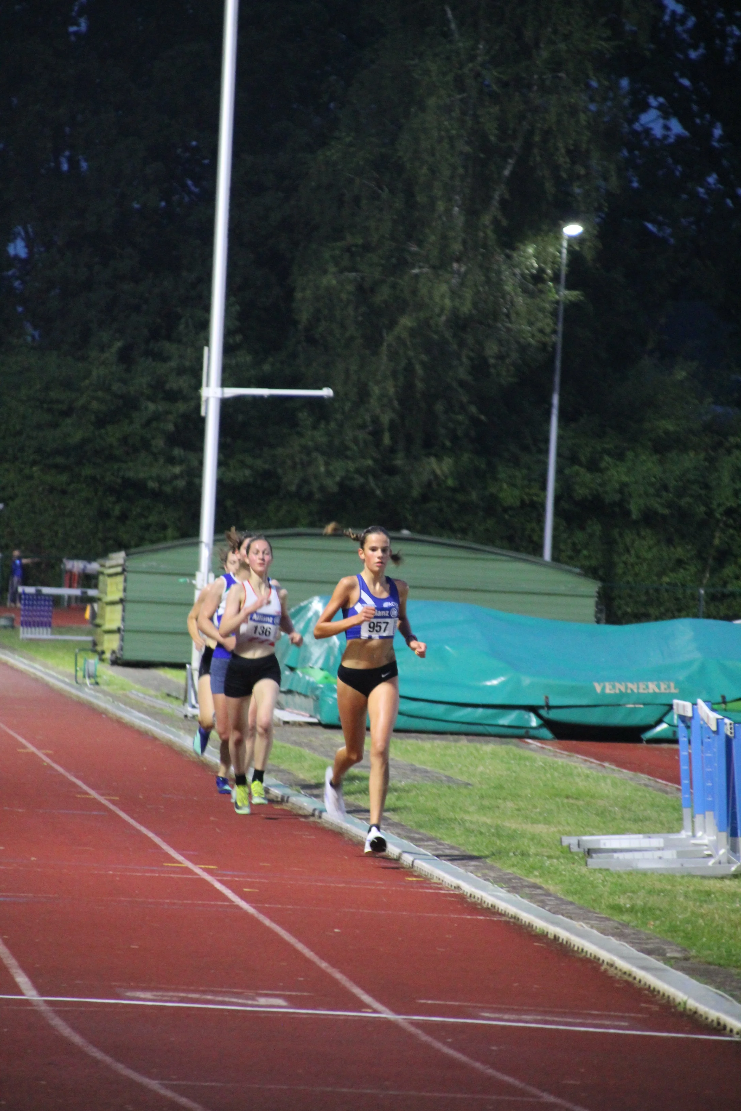 Eerstejaars cadet Paulien Rijnders, net als Fien ook ongeveer een maand ver in de nieuwe opbouw na een rustperiode in juni, had haar zinnen gezet op een verbetering van haar 3000m PR. Ze hoopte hiervoor te kunnen aansluiten bij een groepje dat voor een tempo rond 11’00” zou lopen. Dat bleek er niet te zijn en het gevolg was dat Paulien na 600m al helemaal alleen aan het lopen was. Toch monitorde ze zelf knap haar tussentijden en lichaamssignalen, om de hele tijd heel constant net onder haar PR-gemiddelde te blijven lopen.