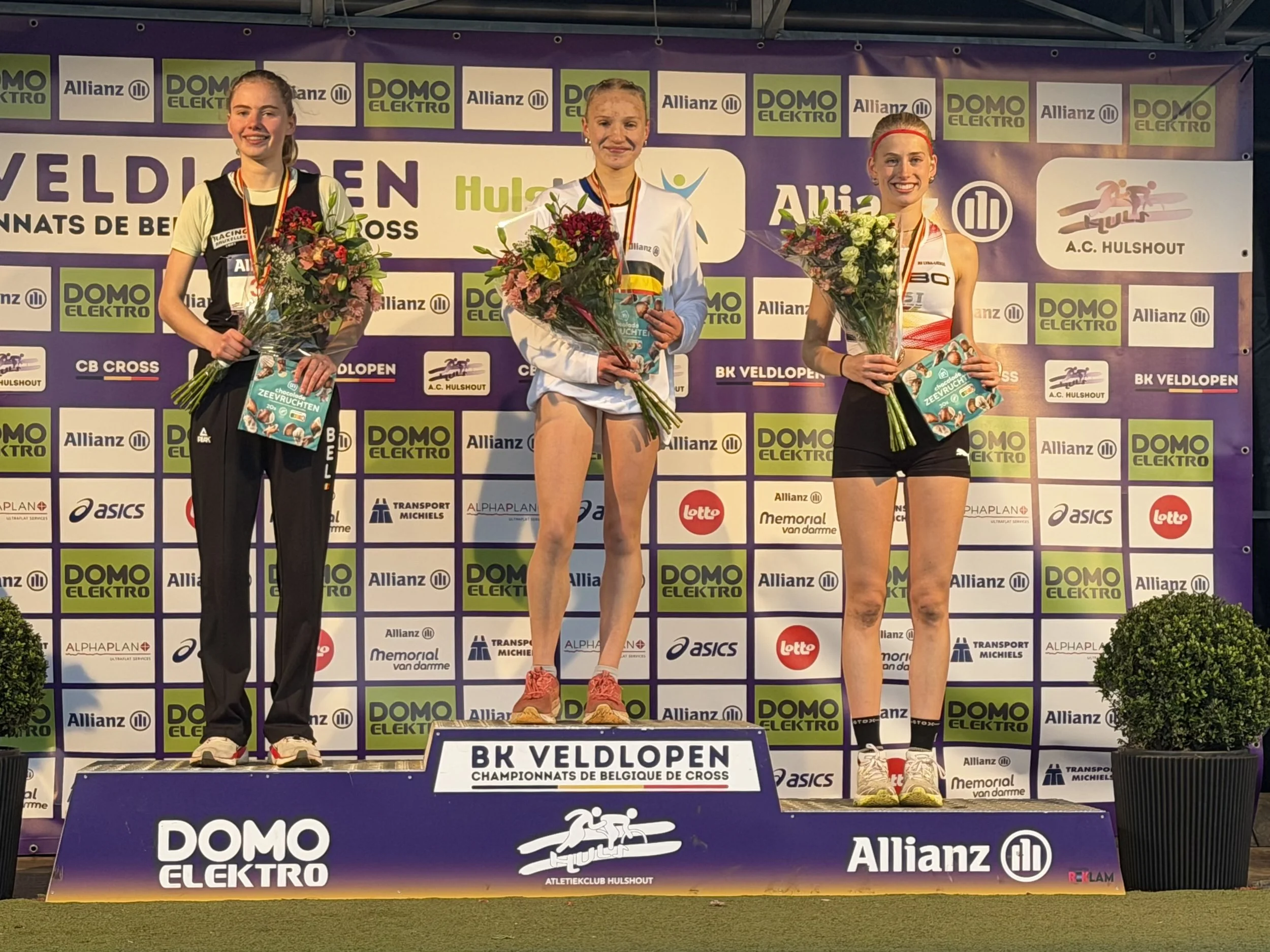 π Laure Verrijcken, junioren 2008-2007(-2006), werd vorig jaar zesde bij de tweedejaars scholieren en mocht dit jaar aantreden bij de junioren. Laure, wiens opbouw in het tweede deel van 2025 volledig in het teken stond van dit BK, zit al een hele tijd in een goede flow. Na een topzomer breidde ze er reeds een prima winterstart aan. Laure werd kort voor het BK nog ziekjes, maar een intensief rust- en verzorgingsprogramma konden het tij gelukkig net voldoende keren. Laure liep de hele race alert vooraan, en schoof telkens mee wanneer er vooraan meiden losten. In de laatste ronde liep Laure heel knap naar brons en dwong hiermee ook haar eerste internationale selectie af. Later meer hierover.